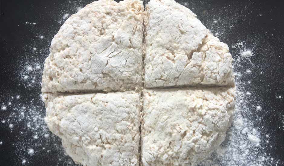 Traditionally baking soda is used as your raising agent and because the leavening action starts immediately you should bring this dough together quickly and no kneading should be your golden rule if you like a soft, floury bread.